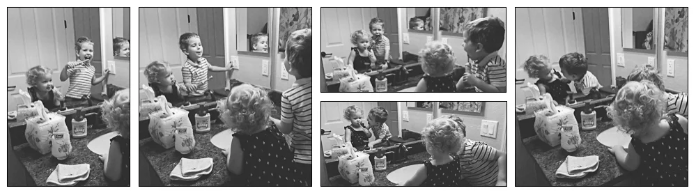 At first I thought this would make a cute sequence of photos since they were standing so nicely brushing their teeth together. But like only brothers do, he got in her face with his mouth wide open and yelled, "Amy, look at my tummy!" Her reaction is priceless and completely her.