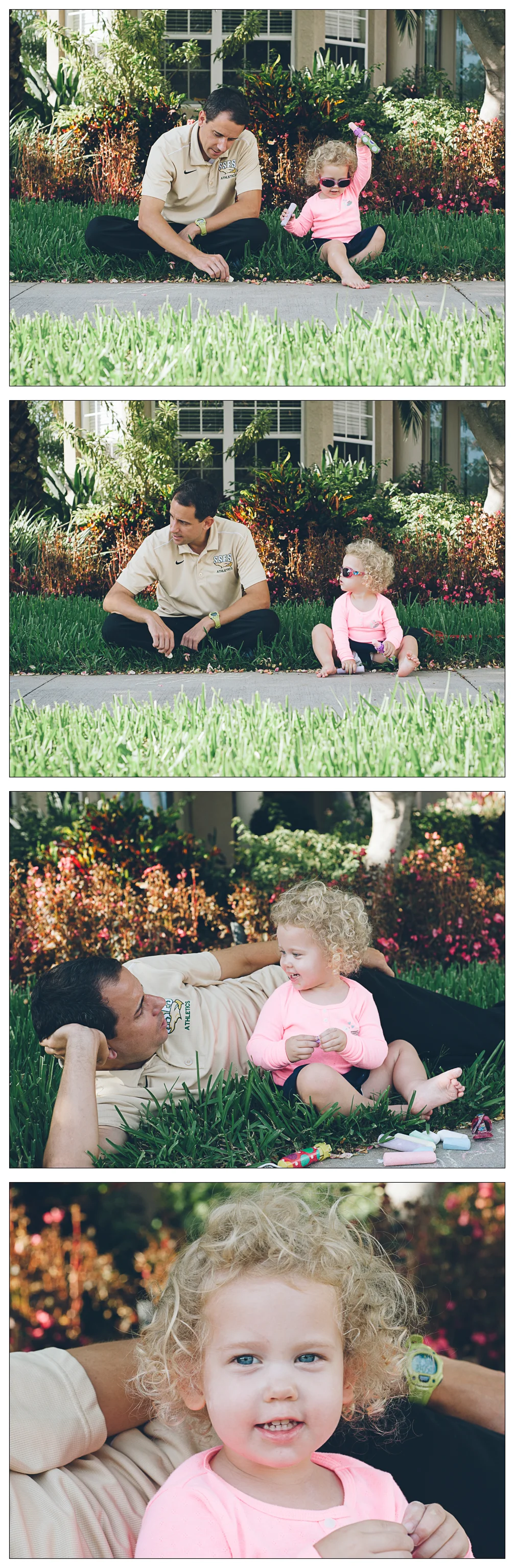 The kids have been having some fun with sidewalk chalk this summer. Amy snuggled up next to Daddy for some "chalk time".